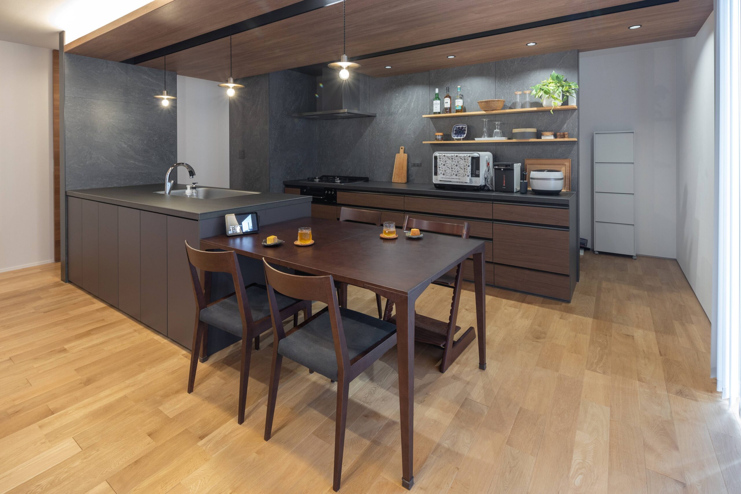 外観のイメージに合わせ、グレーを基調としたキッチン回りです。