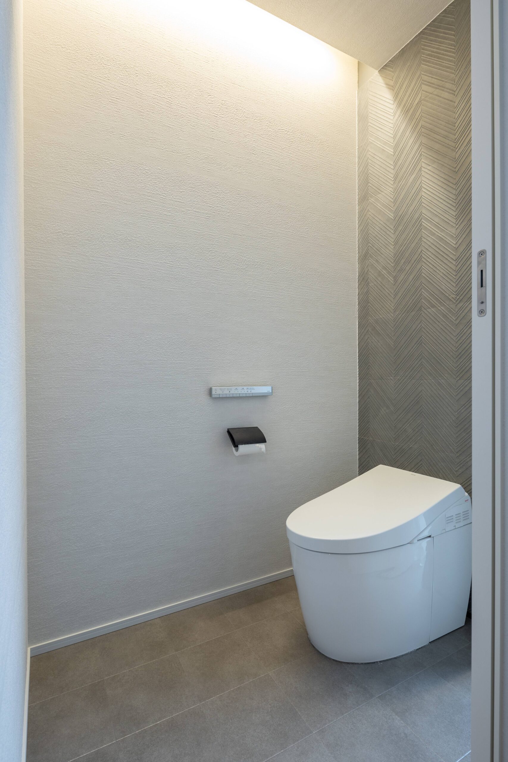 グレーを基調とした仕上りや、間接照明で落ち着いた雰囲気となっています。