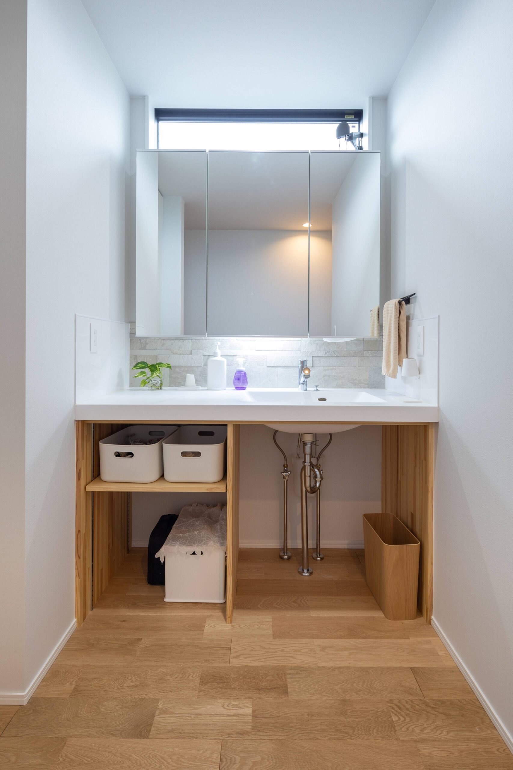 造作の洗面化粧台は、左右に隙間ができることなくお掃除も楽になります。
