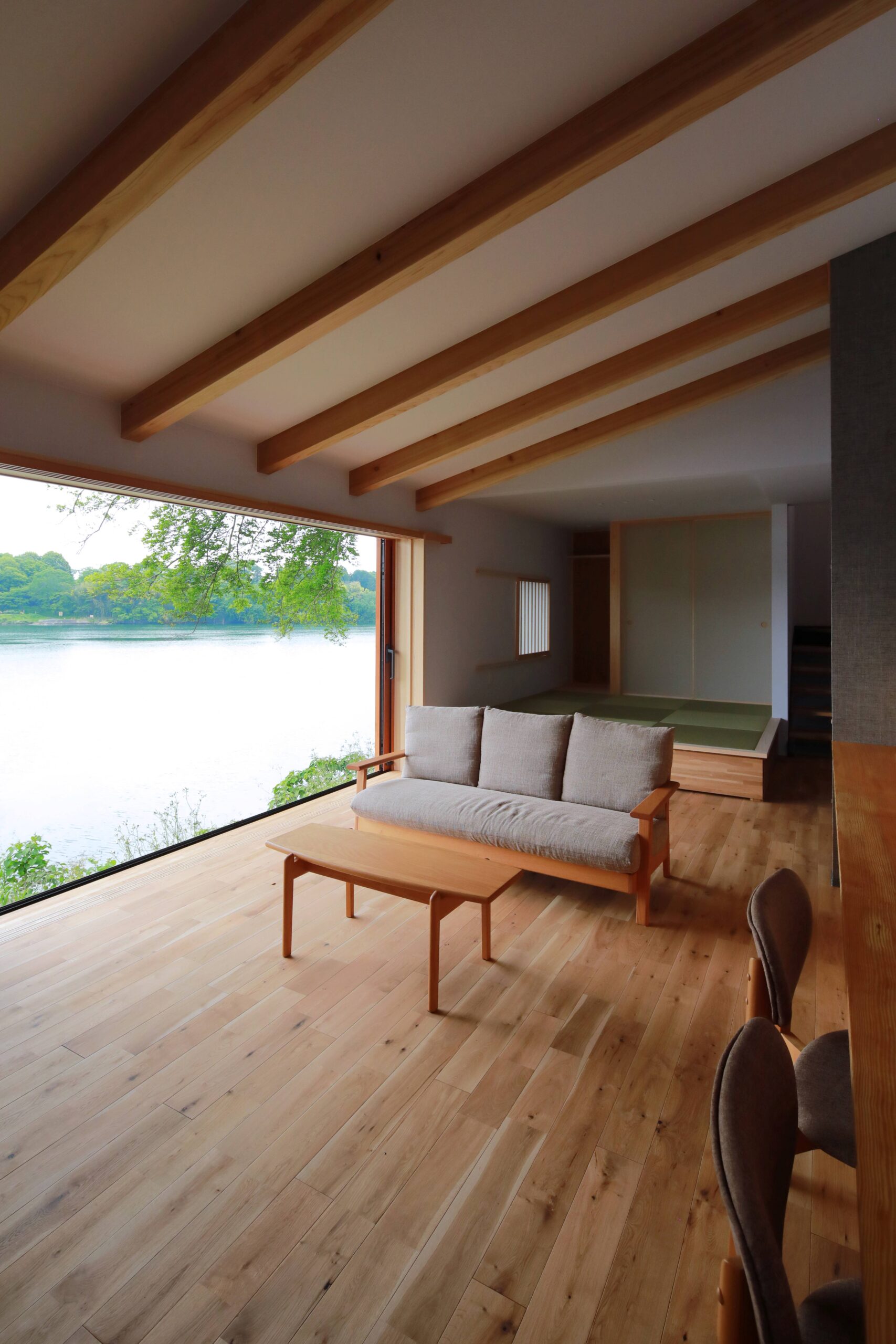 オーナー様も、目の前のロケーションを活かしたプランがご希望で、別荘のような空間が広がるご提案をさせていただきました。