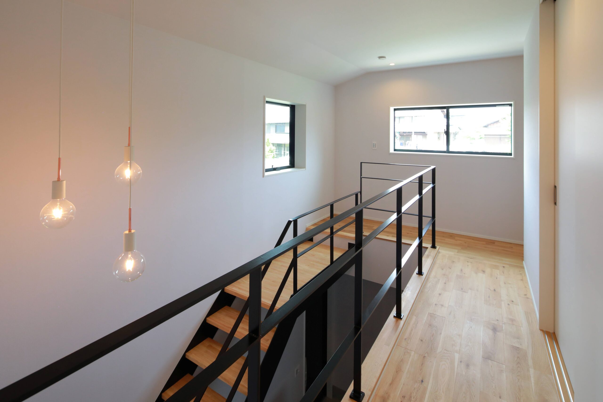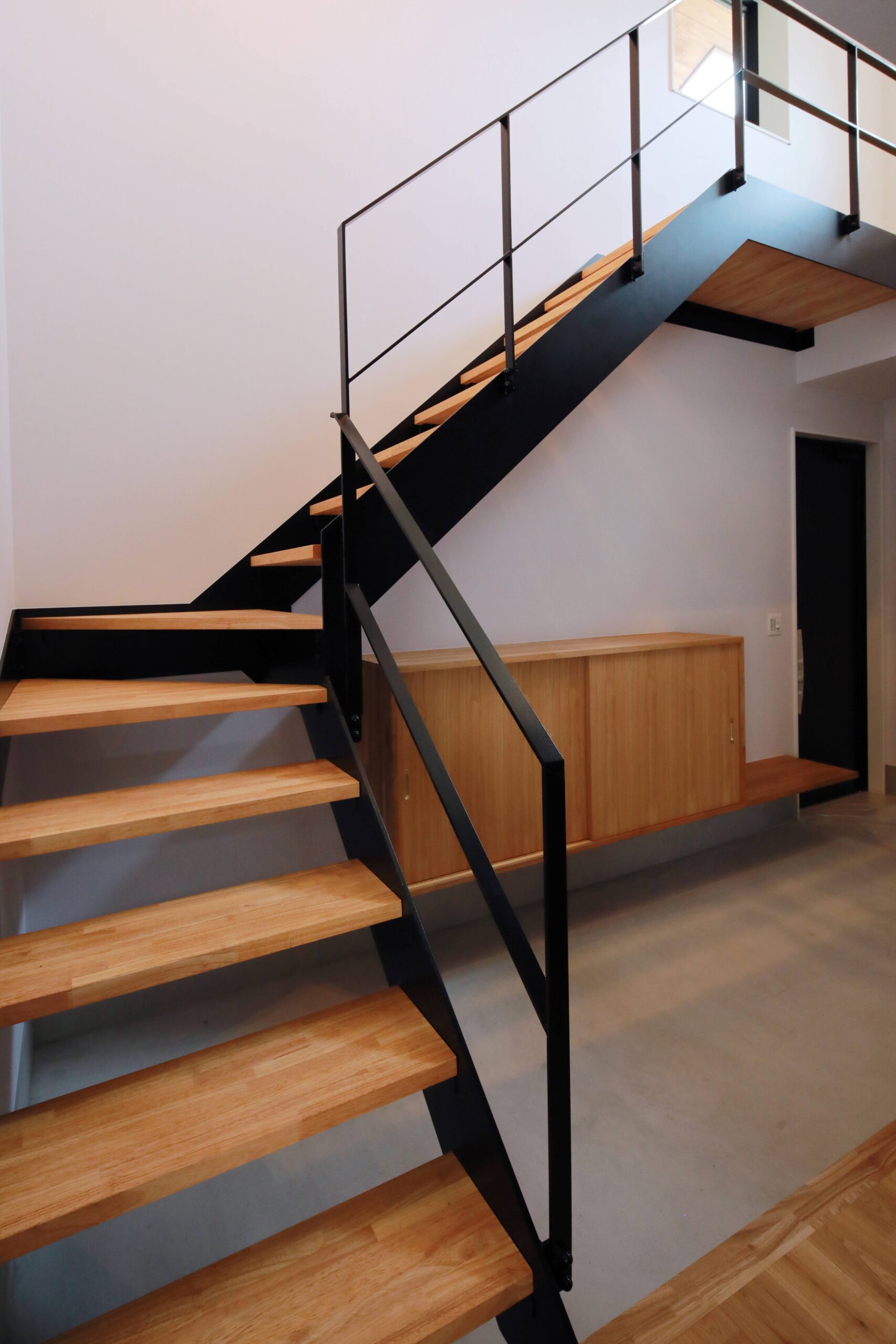 アイアン製の階段で視線の貫けにも配慮をした玄関ホールです。